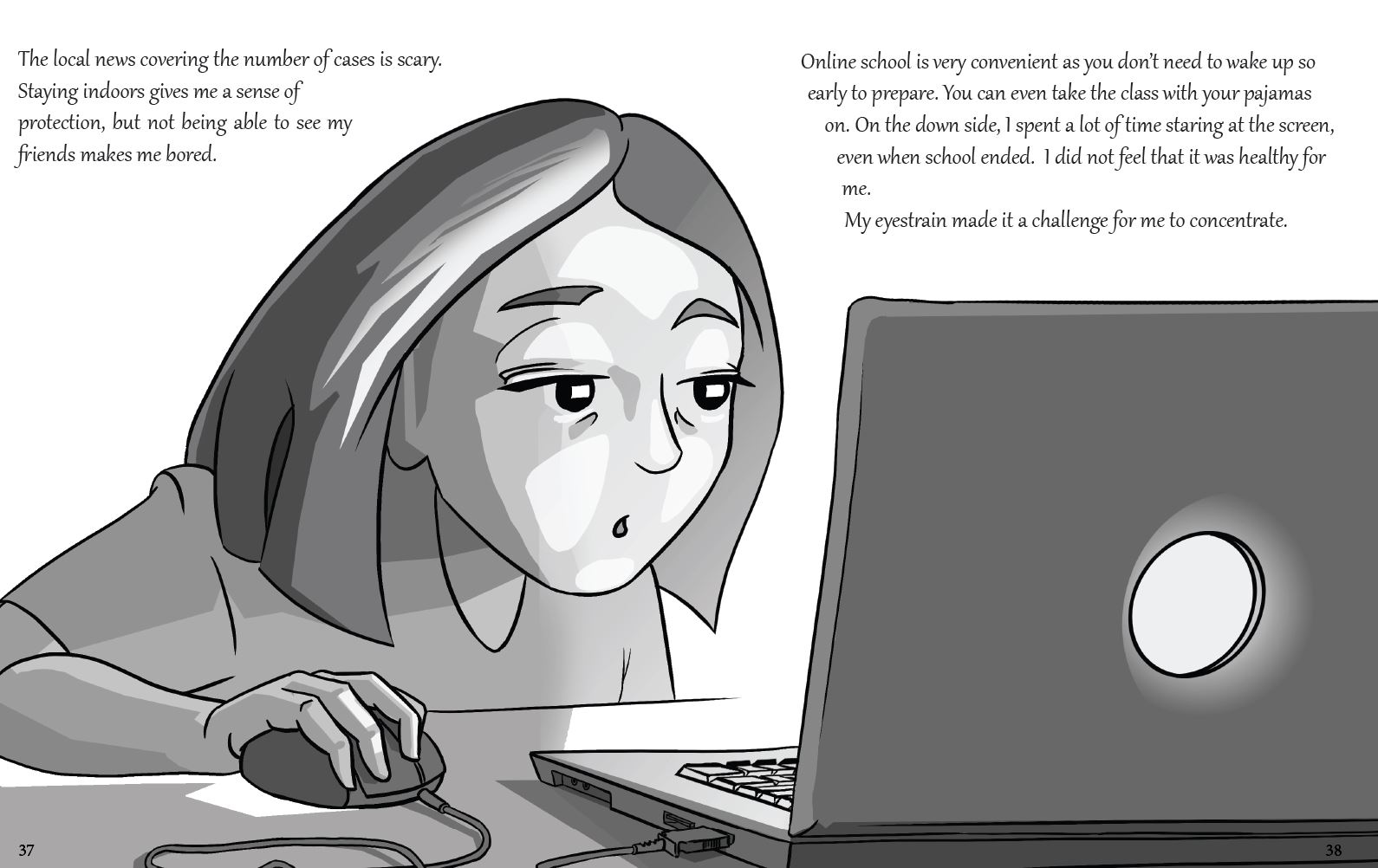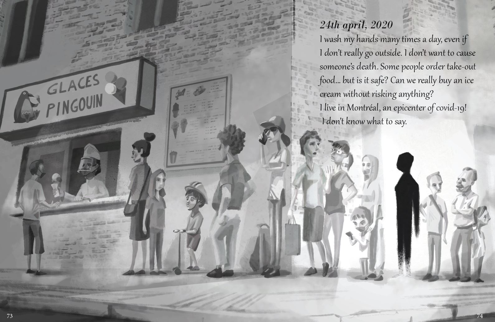 Quarantine Diaries (2020) Pages from Quarantine Diaries, an illustrated collection of children’s early-Covid experiences ISBN 978-1999234669